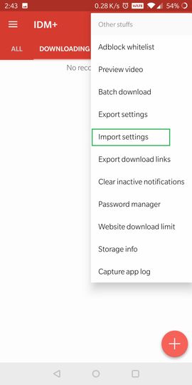 Settings And Choose Downloaded IDM+ Settings File.